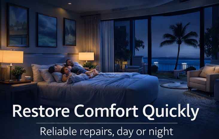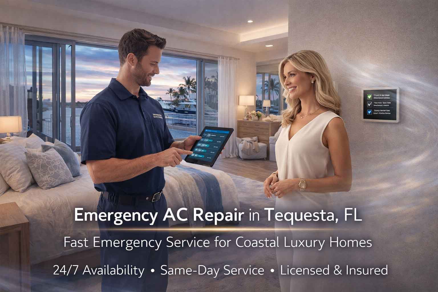In Tequesta, air conditioning is essential for comfort and indoor air quality. With humidity from the Loxahatchee River, ocean air exposure, and long cooling seasons, systems operate under continuous demand. When a breakdown happens, indoor temperatures and moisture levels can rise quickly.